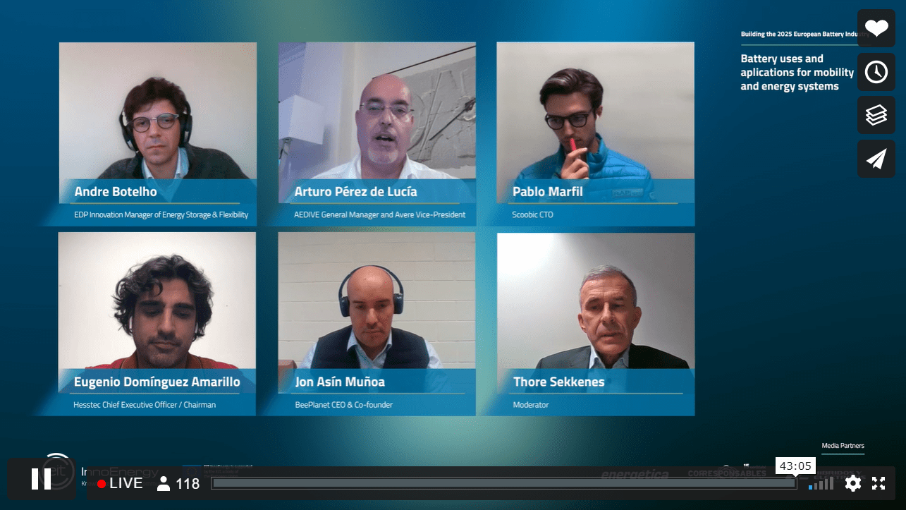 The event had four online sessions that have taken place from December 25 to 15 and where the different perspectives of different institutions and business initiatives have been presented – European Commission, Ministry of Industry, Commerce and Tourism of Spain, Ministry of Environment and Energy Transition of Portugal, Iberdrola, EIT Raw Materials, EDP, Scoobic, HessTec, AEDIVE, BeePlanet, Phi4Tech, Basquevolt, NABATT, Power Electronics, Savannah Resources, Infinity Lithium, Lithium Iberia, EIT Raw Materials, IREC, Tecnalia, Colab Vasco de Gama, INL and CIC Energigune.